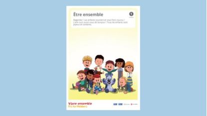 Lot de 25 affiches sur les émotions, les valeurs du programme et des illustrations de situations quotidiennes pour aider les enfants à exprimer leurs sentiments et encourager les échanges.
